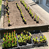 花壇の植え替え中